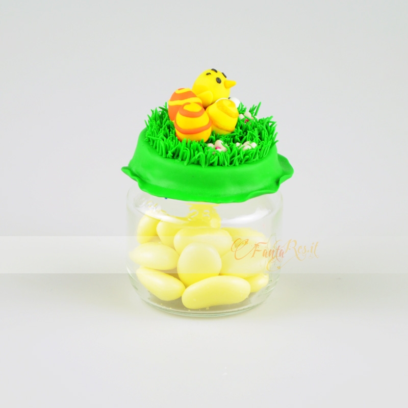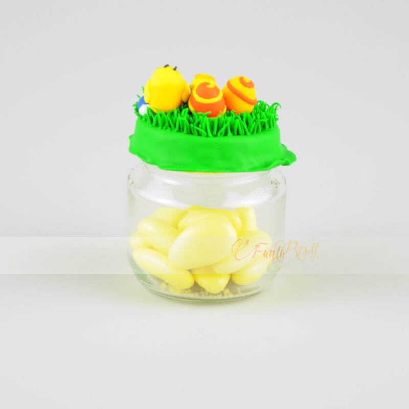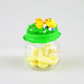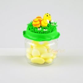 Per tutti i nostalgici anni 80, Bellissimo barattolino con Tiki di new zeland story... può essere usato semplicemente come portaspezie. E' possibile realizzarlo in altri colori. realizzato a mano e tutto in fimo.