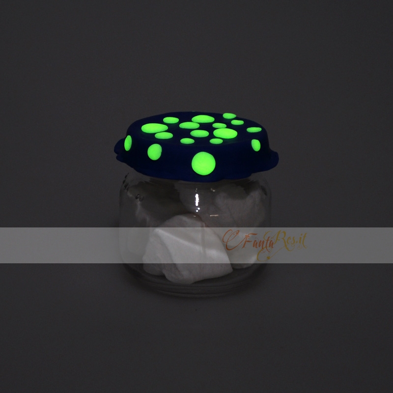 I pois si illuminano al buio. E' possibile realizzarlo in altri colori. realizzato a mano e tutto in fimo.