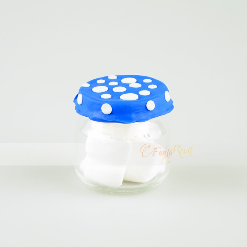 Bellissimo barattolino blu a pois per confettate o semplicemente per portaspezie.