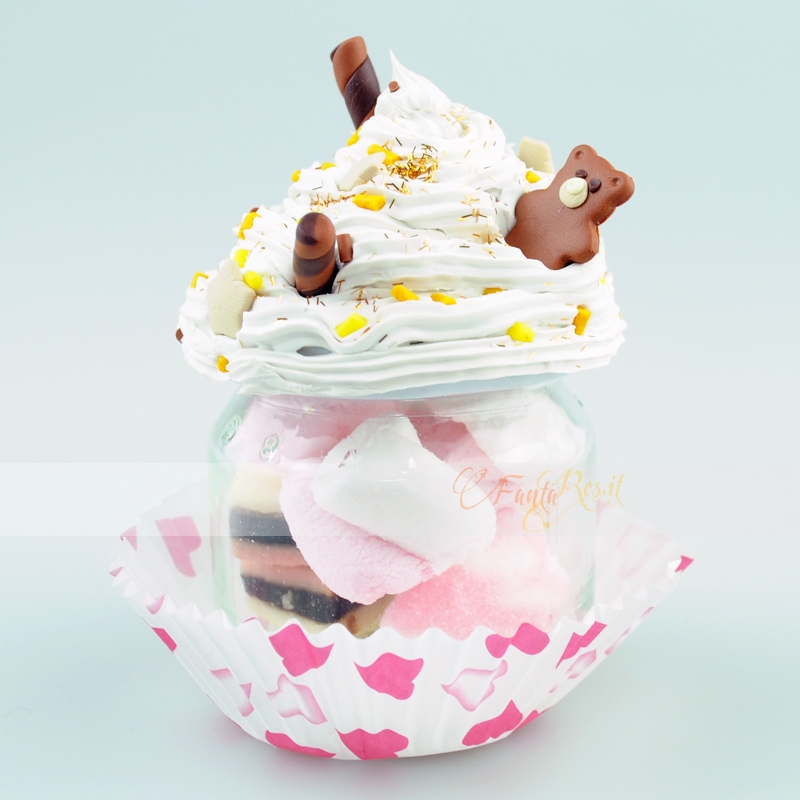 Un barattolini cupcake pieno di marshmallow tutti da mangiare (puoi anche riempirlo di altri dolcetti).