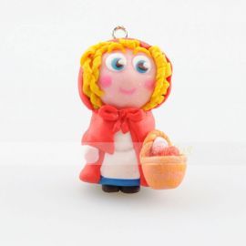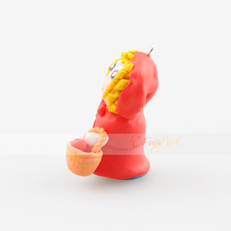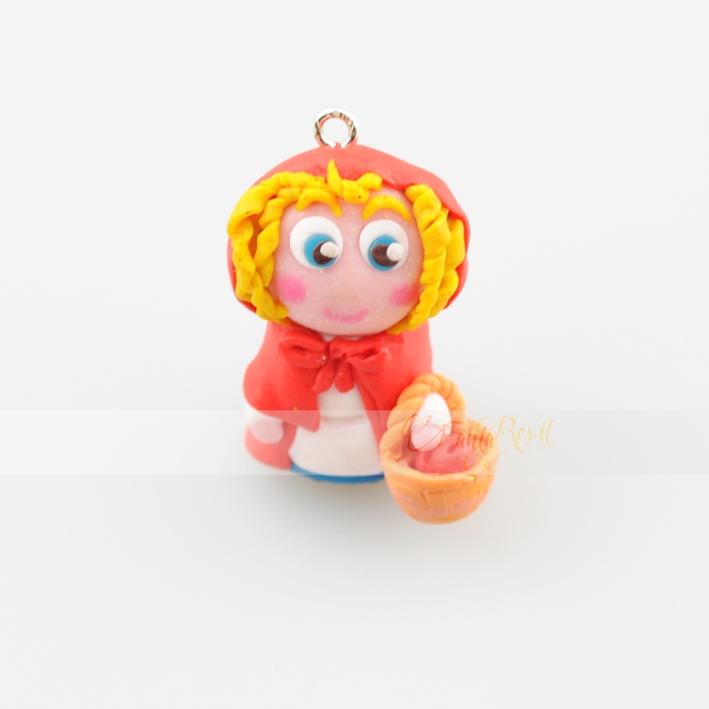 Cappuccetto rosso con cestino realizzato a mano e in fimo.