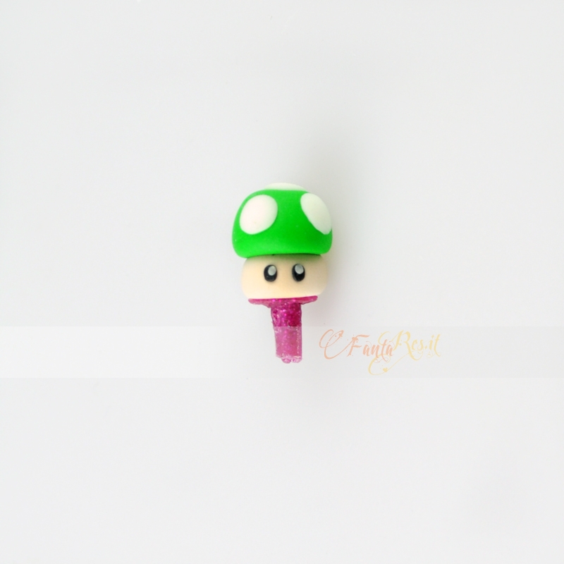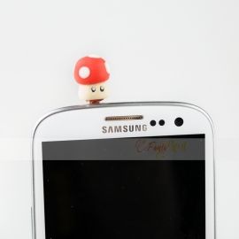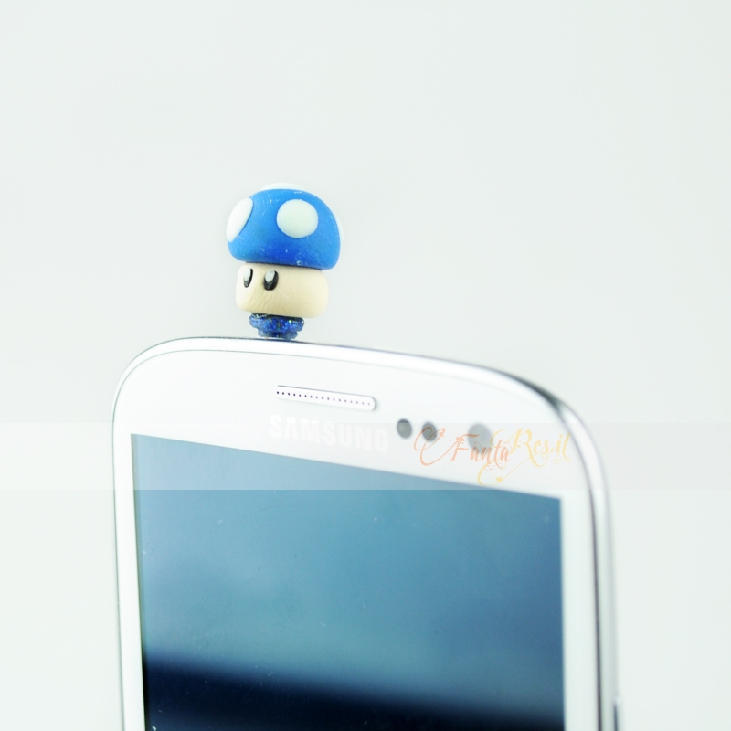 Simpatico funghetto di Mario Bros che si illumina al buio e che proteggerà il vostro cellulare o notebook dalla polvere. Possiamo realizzarlo in tutti i colori che volete. Indicateci il vostro colore preferito e il fungo vi proteggerà dalla sporcizia :D Tappino (gommino) anti polvere per proteggere il jack dell'auricolare e impedire l'ingresso di polvere. Adatto a ogni entrata jack da 3,5 mm, utilizzabile anche per notebook o palmari. Realizzato in fimo, possiamo personalizzarlo con la vostra iniziale o con un charms