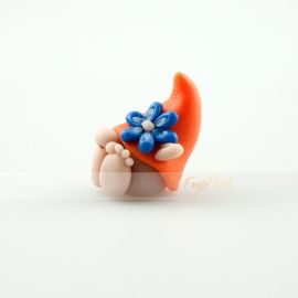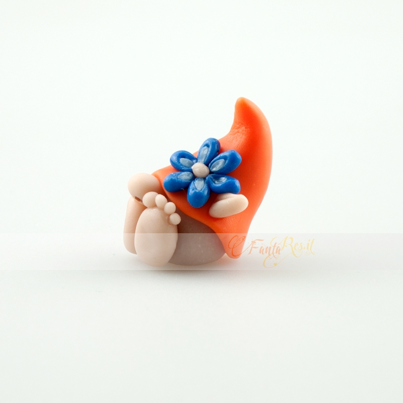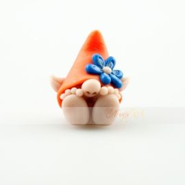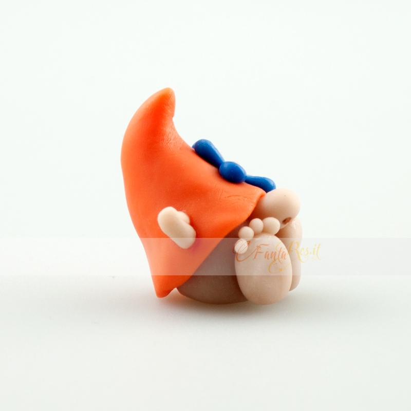 gnomo dal cappello arancione. ideale come bomboniera. Possiamo realizzarlo in vari colori e grandezza. Inoltre potete decidere cosa farlo diventare, un portachiavi? un segnaposto? un ciondolo? Realizzato completamente a mano e quantità disponibile su ordinazione.