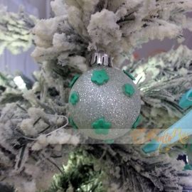 Il colore è di moda ma introvabile... le palline sono decorate a mano con fiori in fimo.