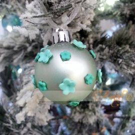 Il colore è di moda ma introvabile... le palline sono decorate a mano con fiori in fimo.