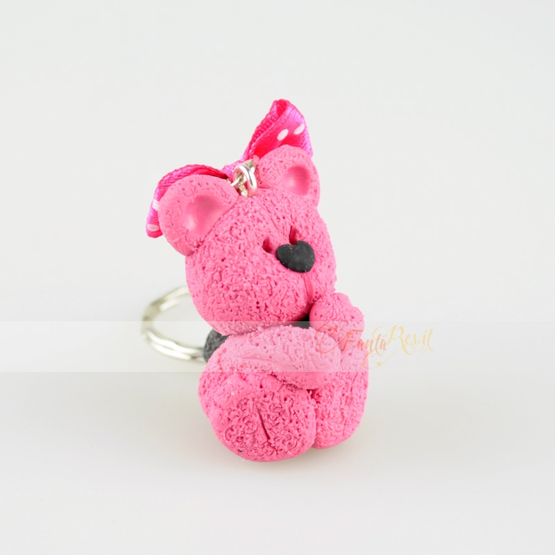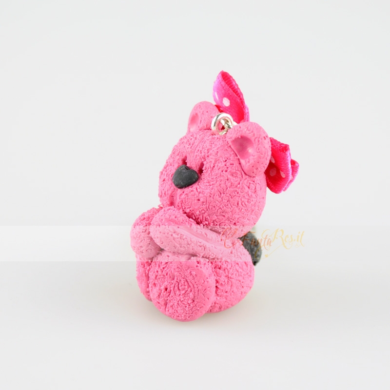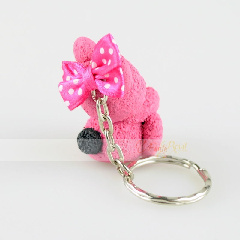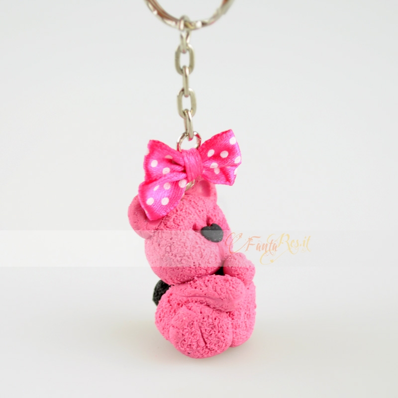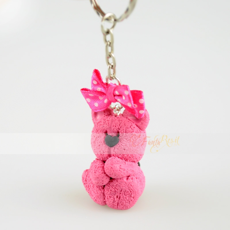 Portachiavi con orso rosa e nasino a cuoricino. ideale come bomboniera.