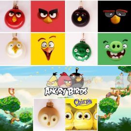 la confezione contiene 5 palline in vetro con decorazioni in fimo.