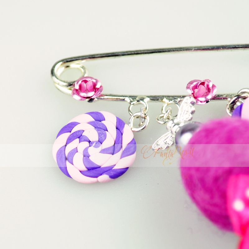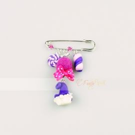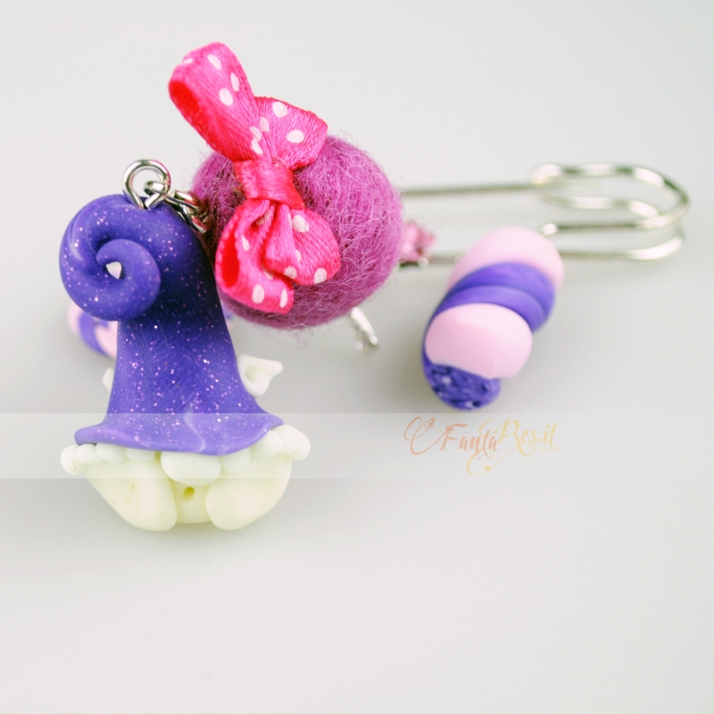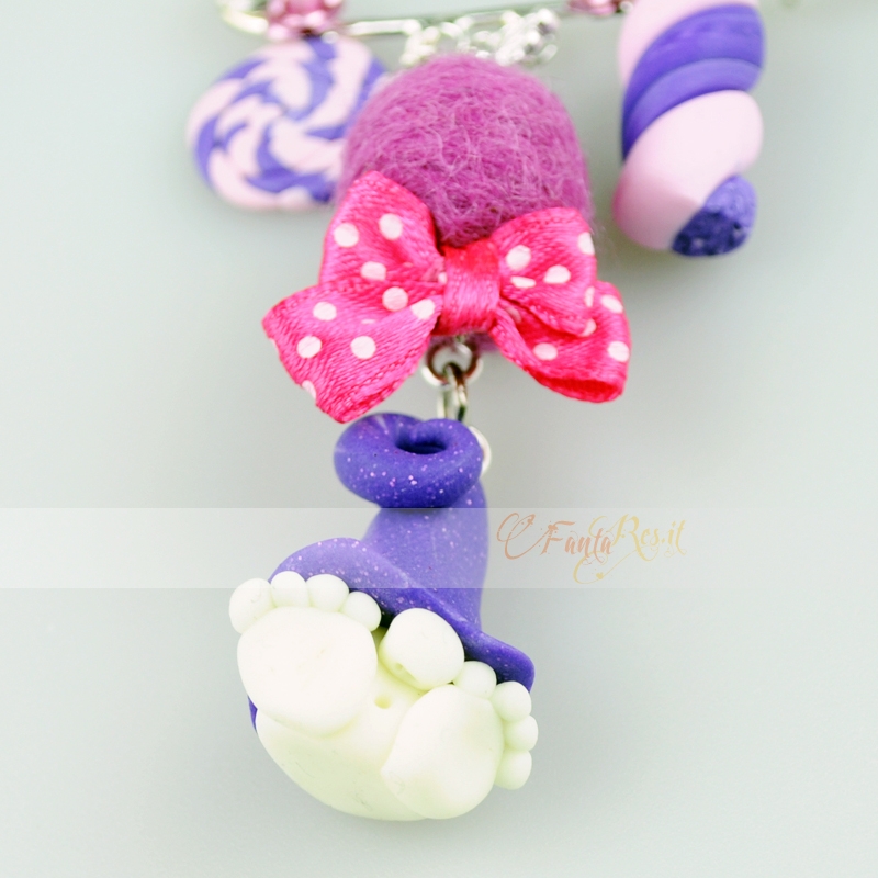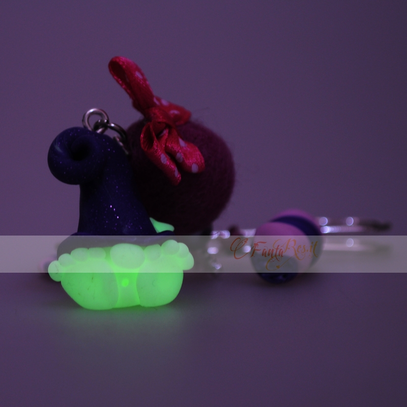 elfo con cappello viola, dolcetti golosi, roselline rosa e fantastico... si illumina al buio.